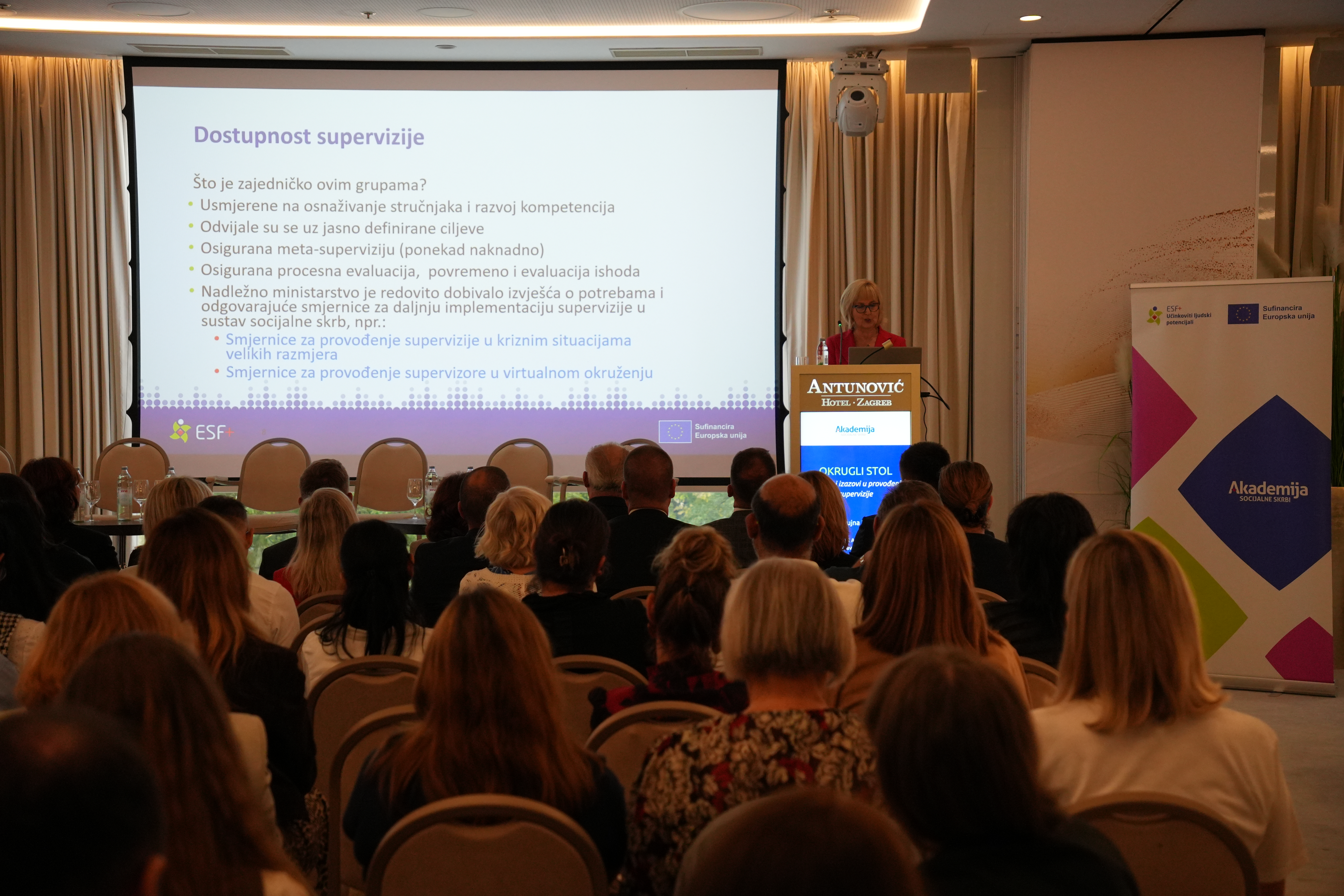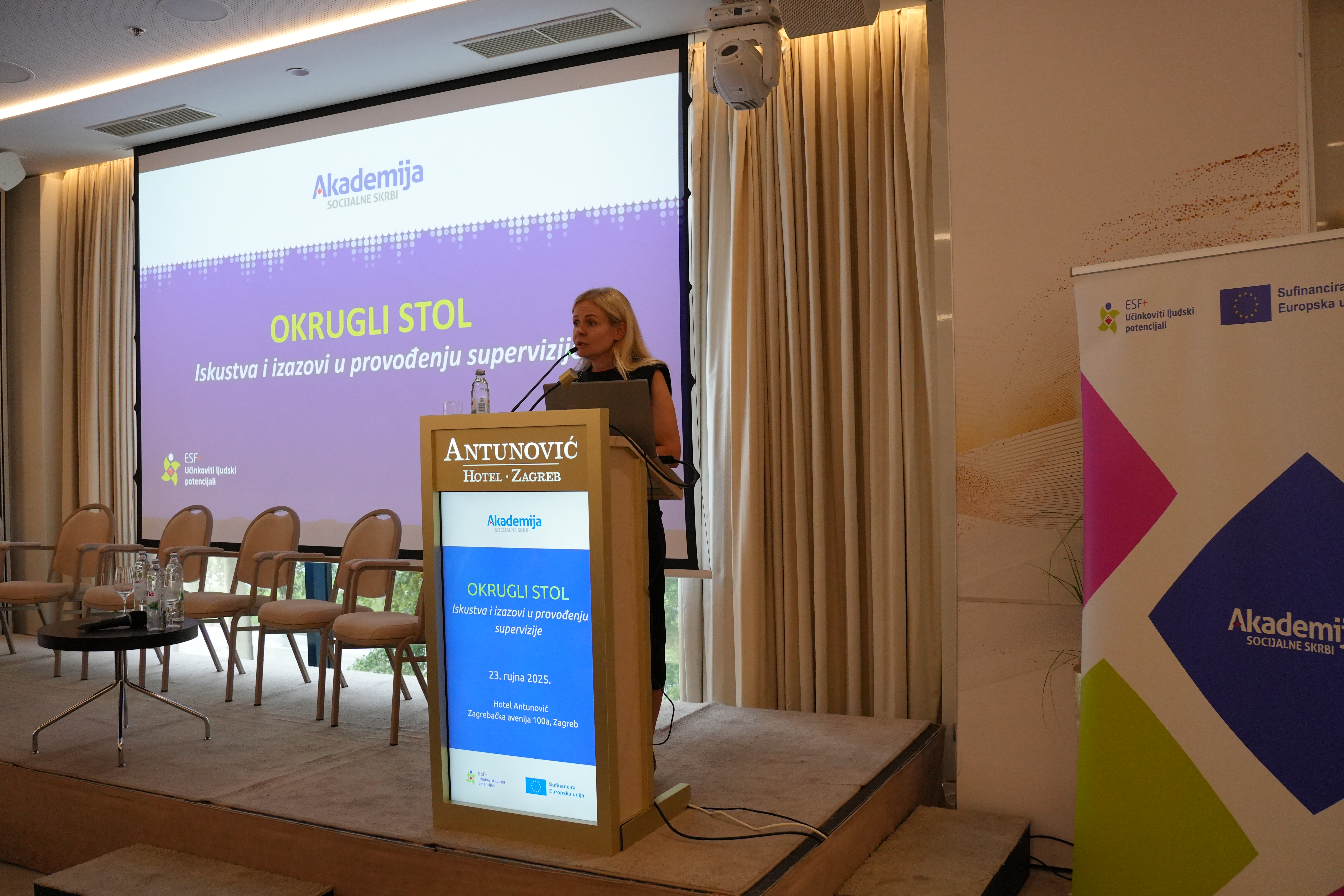 U organizaciji Akademije socijalne skrbi, u Zagrebu je 23. rujna održan Okrugli stol pod nazivom „Iskustva i izazovi u provođenju supervizije“ u sklopu ESF+ projekta „Uspostava Akademije socijalne skrbi i razvoj ljudskih potencijala u sustavu socijalne skrbi“. Okrugli stol je okupio više od 400 stručnjaka iz sustava socijalne skrbi te potvrdio važnost supervizije kao ključnog alata za profesionalno osnaživanje i podršku stručnim radnicima u ovom sektoru.