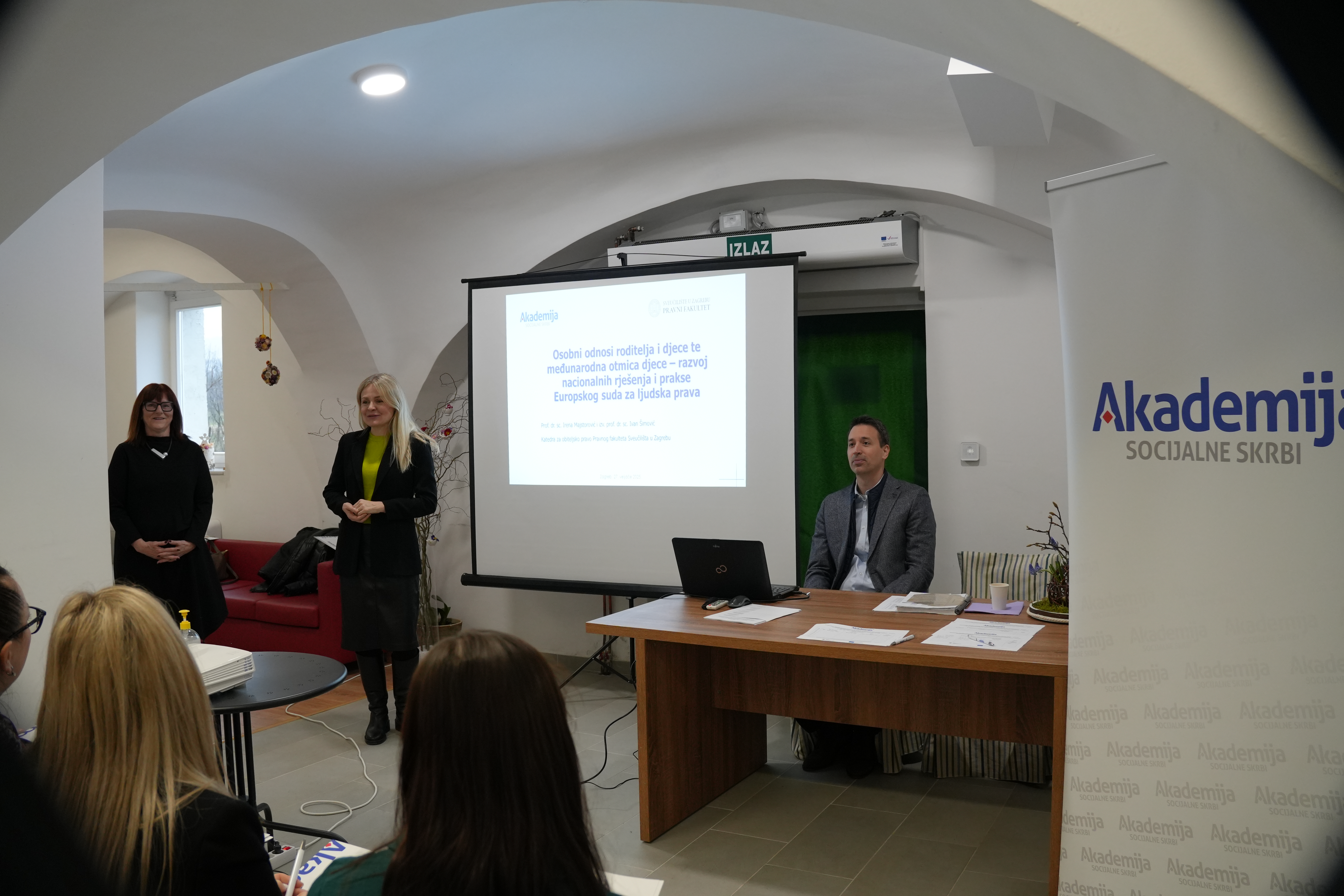 Akademija socijalne skrbi na temelju sklopljenog Sporazuma o suradnji s Pravnim fakultetom Sveučilišta u Zagrebu provela je drugu radionicu na temu „Osobni odnosi roditelja i djece te međunarodna otmica djece – razvoj nacionalnih rješenja i prakse Europskog suda za ljudska prava“ 27. veljače 2025. Radionica je održana u Centru za pružanje usluga u zajednici Ozalj u suradnji s ravnateljicom Dijanom Borović-Galović.