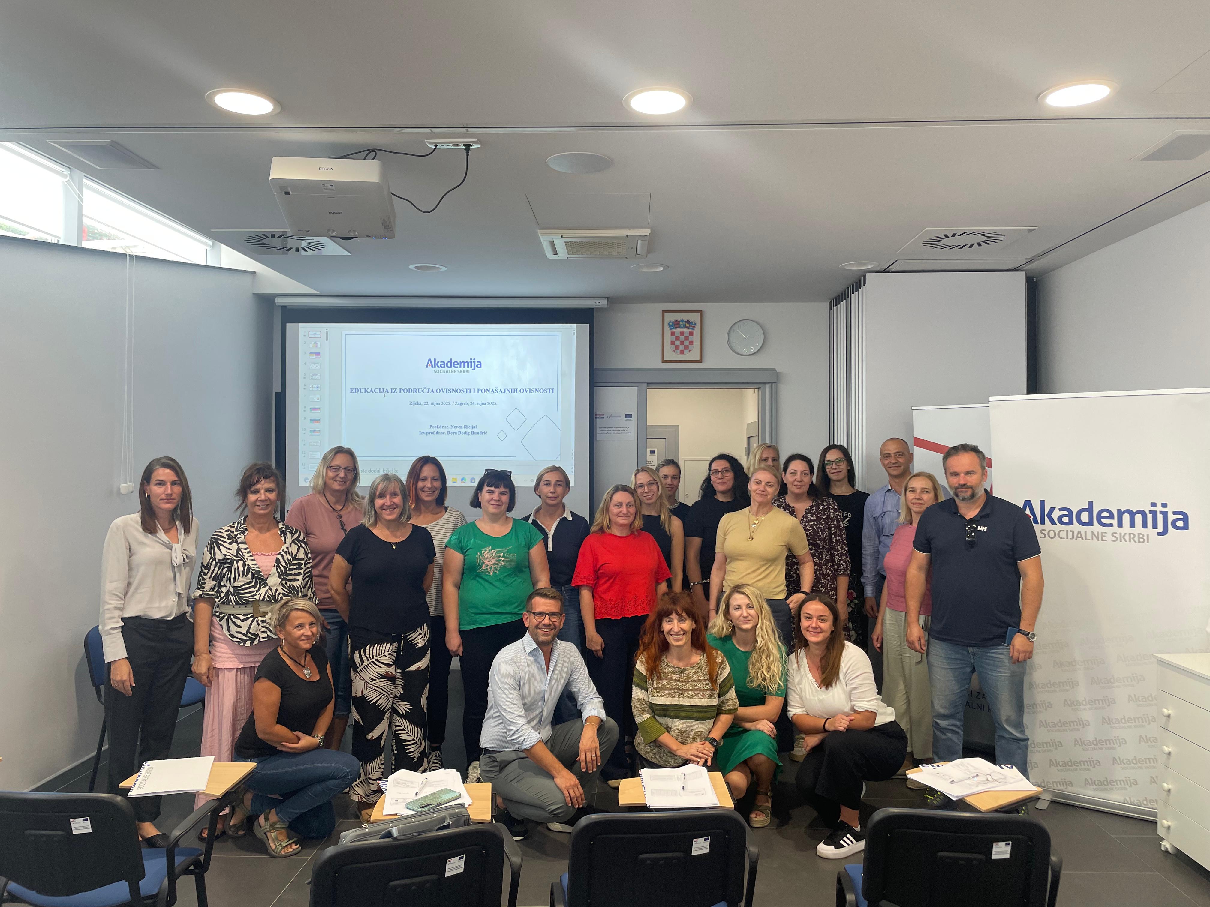 Održan je prvi termin programa usavršavanja na temu „Edukacija iz područja ovisnosti i ponašajnih ovisnosti“ u Područnom uredu Hrvatskog zavoda za socijalni rad u Rijeci 22. i 23. rujna 2025.