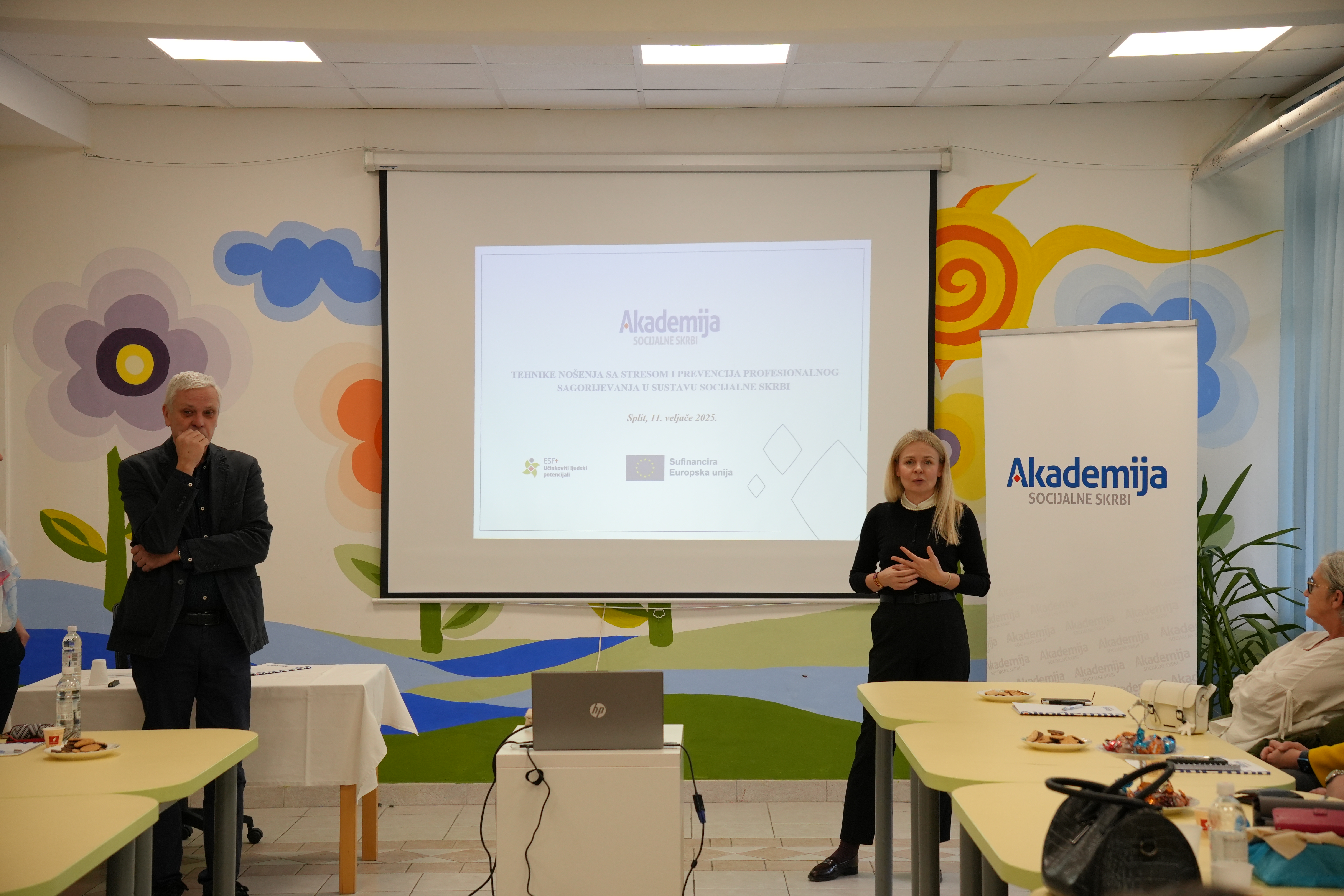Akademija socijalne skrbi održala je treći termin programa usavršavanja na temu „Tehnike nošenja sa stresom i prevencija profesionalnog sagorijevanja u sustavu socijalne skrbi“ 11. i 12. 02. 2025. u Centru za pružanje usluga u zajednici Maestral u Splitu.