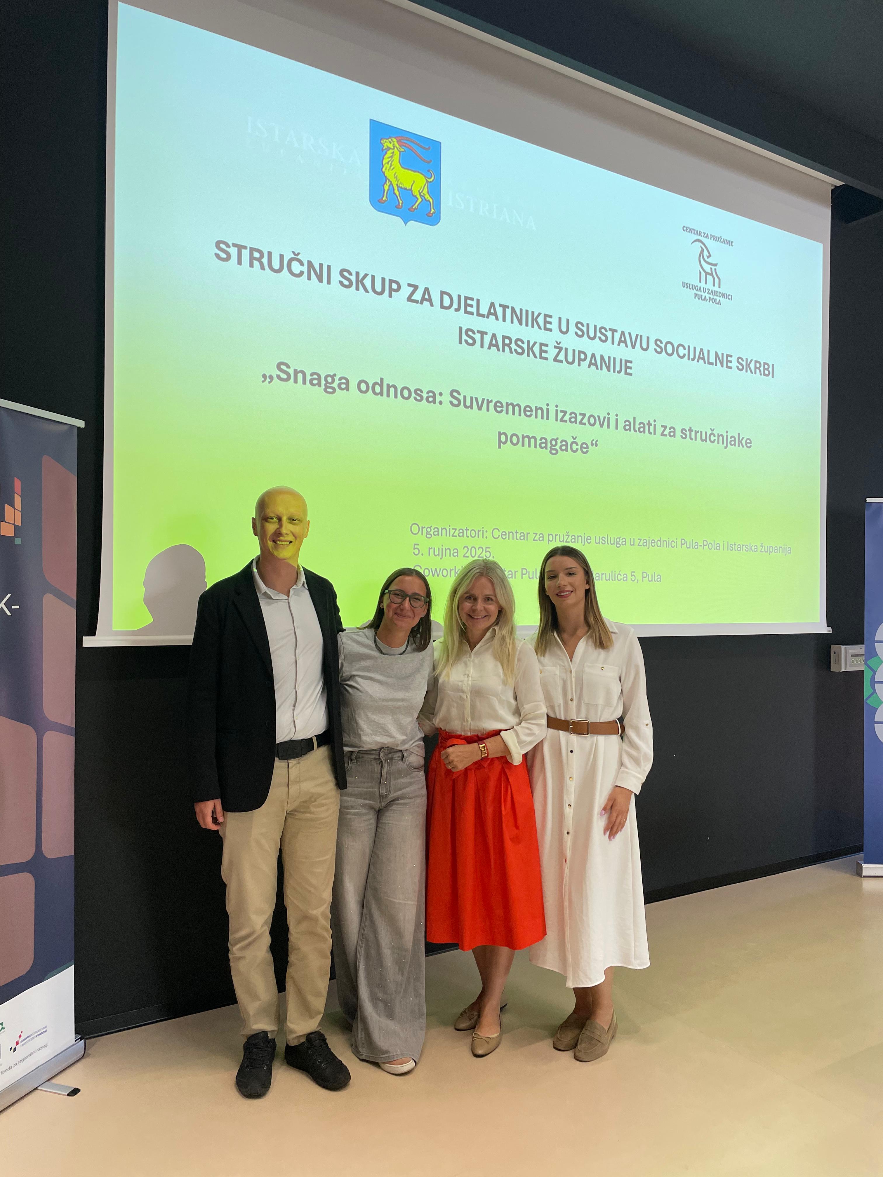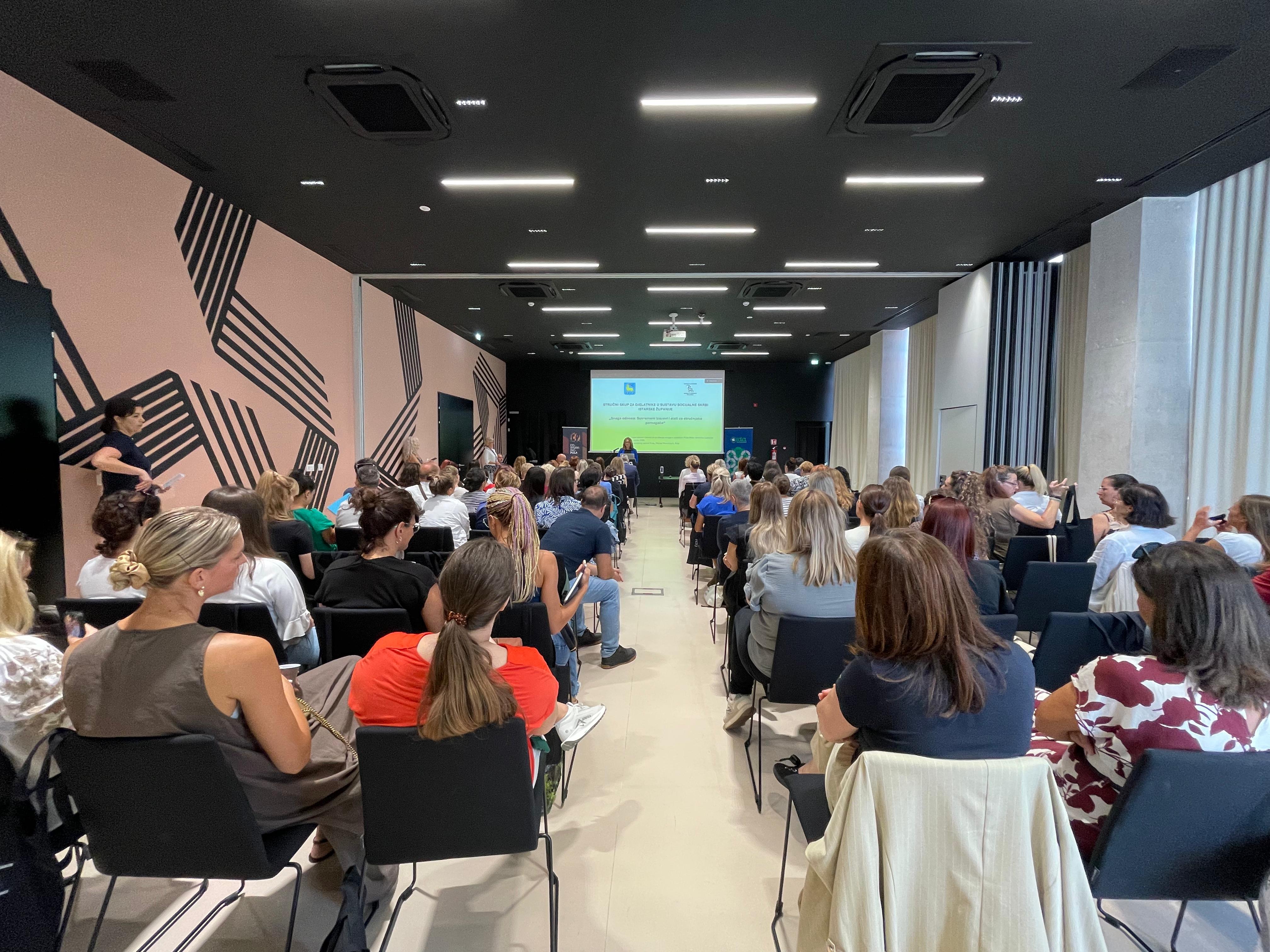 Stručni skup je održan u organizaciji Istarske županije i Centra za pružanje usluga u zajednici Pula-Pola, u Puli, za 100-injak djelatnika u području socijalne skrbi.